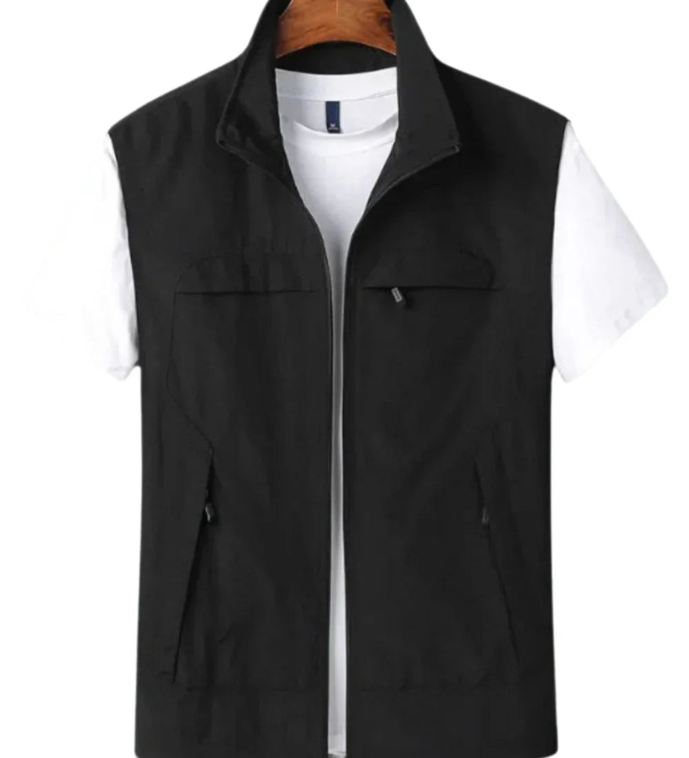 Men's vest with stand-up collar and zip closure