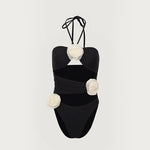 Turn heads by the pool with the Bloom Isla Cut-Out Swimsuit, a stunning design that blends bold femininity with playful charm. Featuring sculpted side cut-outs and adorned with delicate 3D floral appliqués, this swimsuit is made to flatter and impress. The halter neckline and figure-enhancing shape create a sophisticated yet flirty silhouette, perfect for soaking up the sun in style.