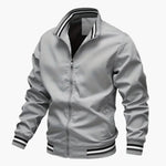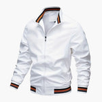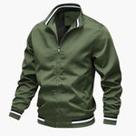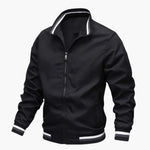 Men's Bomber Jacket with Striped Collar and Ribbed Hem