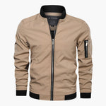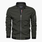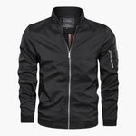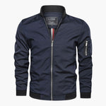 Men's bomber jacket with ribbed collar and functional zipped pocket.