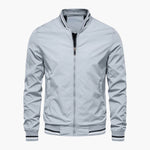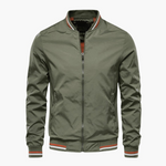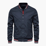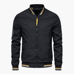 Men's bomber jacket with ribbed striped finishes and front zip closure.