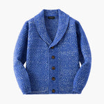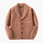 Men's retro cardigan with shawl collar and button closure.