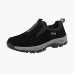Men's lace-free hiking shoes with elastic gore and lugged sole.