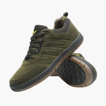 Men's lace-up hiking shoes designed for outdoor activities. This model features a mesh upper with reinforced panels and adjustable lacing. The rubber outsole with textured pattern is designed for traction on various surfaces. The low cut leaves the ankle free during walking or hiking.