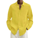 Featuring a pointed collar, this shirt has a front button closure and long sleeves finished with buttoned cuffs. The straight hem provides a neat finish. The woven texture is visible across the entire surface. Its loose fit allows it to be worn daily or on various occasions, paired with different styles.