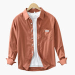 This men's shirt features a folded collar and a full button front closure. It includes a single chest pocket and long sleeves with buttoned cuffs. Its fine woven surface and relaxed fit offer a neat and structured appearance, suitable for both casual and semi-formal outfits.