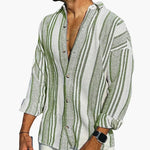 This men's shirt features a classic collar and discreet button closure along the entire front. The long sleeves can be rolled up according to the desired style. The fluid cut ensures a natural drape. The striped woven surface offers a neat and balanced appearance.