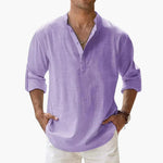 Men's long-sleeve shirt with V-neck collar and straight hem