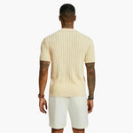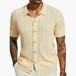 This men's knit shirt features a classic collar and a full button placket. Designed with short sleeves and a straight hem, it offers different ways to be worn. Its ribbed surface adds texture and relief, while its regular fit provides a neat and tidy appearance.