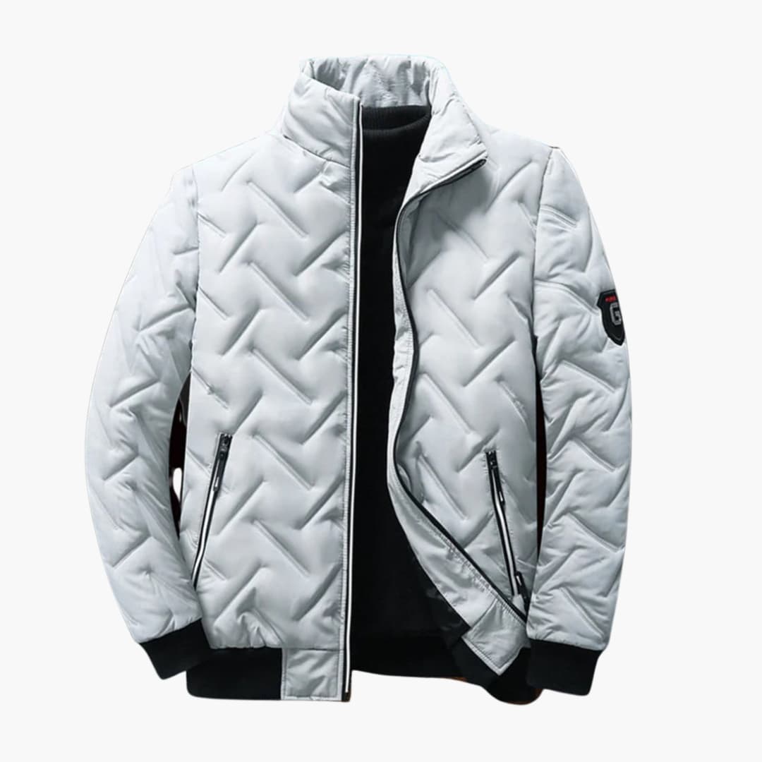 • Quilted surface: Chevron pattern stitched across the entire jacket.