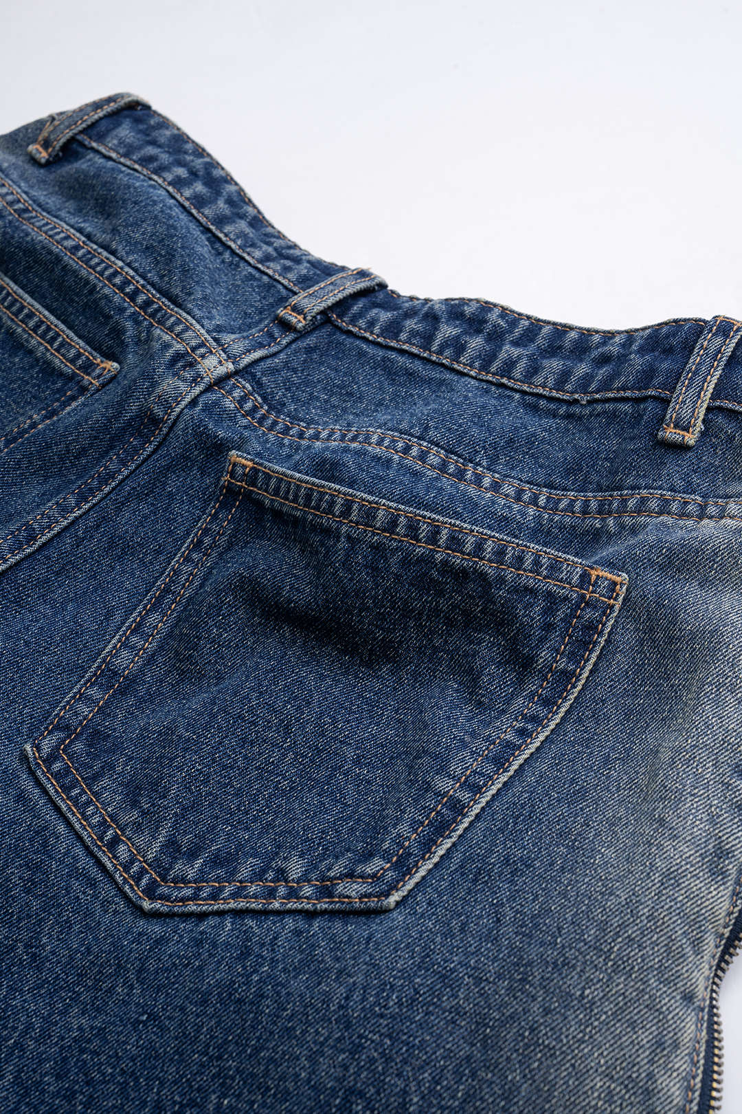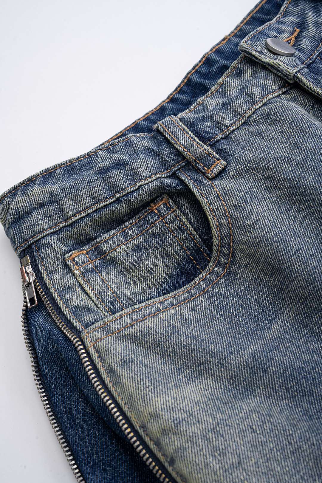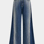 Make a bold statement with the Dual-Tone Wide-Leg Jeans. These jeans feature a unique color-block design, with two contrasting washes of denim running down the sides for a modern, edgy look. The high-waisted fit and wide-leg silhouette add an effortlessly cool vibe to your wardrobe.