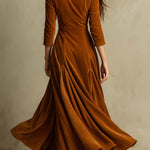 Affirmez votre élégance avec la robe Élise, une pièce intemporelle qui incarne le raffinement et le confort. Confectionnée dans un velours de qualité supérieure, elle enveloppe la silhouette avec douceur et fluidité, offrant une sensation agréable sur la peau. Sa coupe cintrée, son col chemise rétro et ses boutons décoratifs créent un équilibre parfait entre allure féminine et sophistication classique. Idéale pour les soirées élégantes ou les événements d’automne et d’hiver, c’est une robe qui ne passe jamais inaperçue.