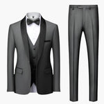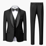 Men's three-piece tuxedo set with shawl collar jacket and matching vest