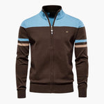 Men's zip-up vest with ribbed collar and contrasting stripes