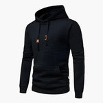 This men's hooded sweatshirt is designed with quilted fabric and a pullover fit. The hood is adjustable with a drawstring and the kangaroo pocket offers practical space at the front. Long sleeves with ribbed cuffs ensure a snug fit. Suitable as a layering piece in cool weather.