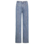 Clean lines, flattering fit — the Hylda High-Waisted Seam Detail Jeans are your new denim go-to. Designed with a sleek front seam and subtle flare through the leg, these jeans elongate your silhouette while offering that effortless, everyday edge.