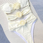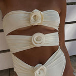 Radiate effortless elegance with the Isla Rose Cut-Out Swimsuit, a show-stopping one-piece that blends modern allure with romantic detail. Designed with sculpted side cut-outs and finished with delicate rose appliqués along the bodice and waist, this swimsuit highlights your figure with soft ruching and a flattering high-cut leg.