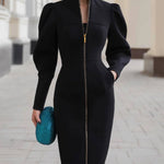 Marene | Robe Midi Élégante à Zip – Sobriété Moderne et Allure Parisienne