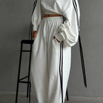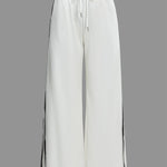 Make a stylish statement with the Contrast Bow Wide-Leg Pants. Featuring bold contrast tie details and a relaxed silhouette, these pants blend comfort with effortless style. The elastic waistband ensures the perfect fit, while the wide legs add a modern, airy feel.