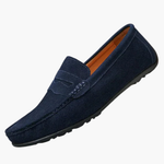 These men's moccasins feature a low upper with a suede-effect surface. The slip-on style allows practical use without laces. The rounded front offers a balanced shape, while the flexible sole ensures good stability for everyday wear. Suitable for city or dress outfits.