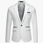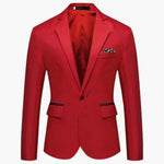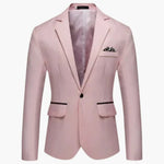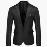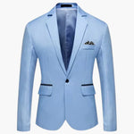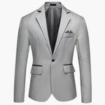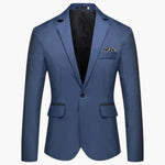 This men's jacket features a notch lapel and a single button closure at the front. It includes two flap pockets and a welt chest pocket. The straight long sleeves and plain woven surface ensure a neat and structured look, suitable for dressy or semi-formal outfits.