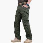 Men's multi-pocket cargo pants with adjustable waistband.