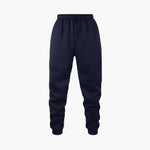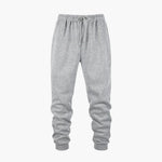 These men's jogger pants feature an elastic waistband with drawstring, side pockets, and ribbed ankles. Their loose fit offers a wide silhouette suitable for sports activities or everyday wear. The plain surface, without patterns or prints, allows these pants to be worn with various tops and shoes.