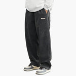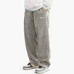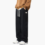 Men's wide-leg corduroy pants with elastic waist and loose fit.