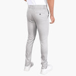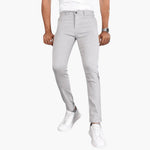 These men's pants feature a fixed belt with belt loops and a front zipper closure. They have two practical side pockets for storing your small essentials. The legs are cut straight and end with a clean, straight hem at the ankle. Their plain woven surface and standard height make them a versatile choice for different outfits and occasions.