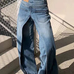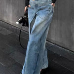 Edgy, daring, and unapologetically bold, the Phantom Split Wide Leg Jeans are designed to make a statement. Crafted from a washed black denim with an exaggerated wide-leg silhouette, these jeans feature dramatic front splits that add movement and attitude to every step. The structured back pockets and high-rise waistline balance the boldness with a flattering, sculpted fit.