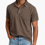 This men's T-shirt features a V-shaped neckline with discreet buttons on the front. The straight cut offers a balanced and uniform silhouette. The short sleeves are suitable for mild temperatures. The smooth surface provides a neat finish, ideal for daily wear.