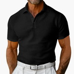 Men's short-sleeve polo with classic collar and button placket for a neat style