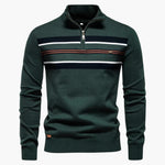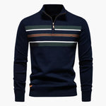 Men's striped half-zip sweater with stand-up collar