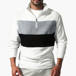 Men's sporty pullover, colored panels, stand-up collar and half-zip