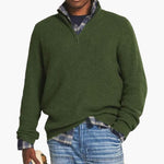 Men's zip-up sweater with stand-up collar and ribbed knit
