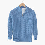 Twisted knit pullover for men with half zip and ribbed hem