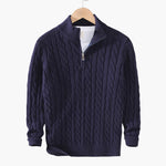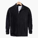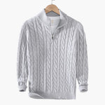 Men's half-zip cable knit sweater with ribbed finishes