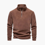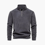 Men's pullover fleece sweater with a stand-up half-zip collar.