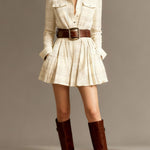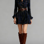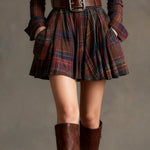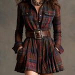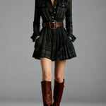 • Design : col à revers, motif à carreaux contrastés et ceinture à la taille pour un look structuré.