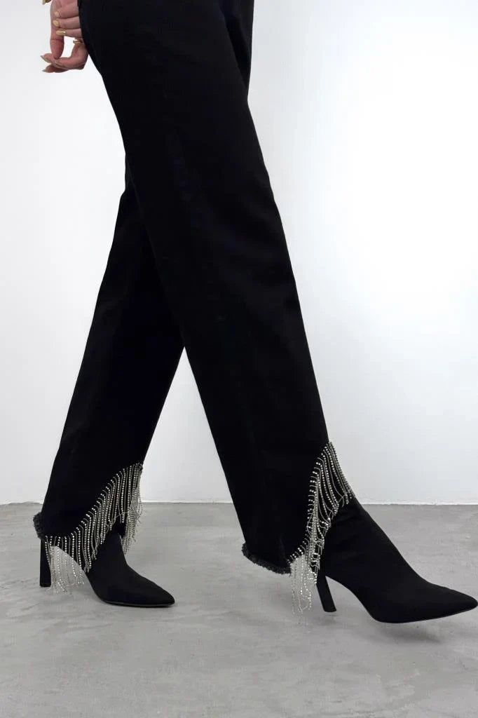 Perfect for nights out, festivals, or anytime you want your outfit to do the talking, the Soirée Beaded Hem Jeans are your go-to for effortless glam with a denim twist.