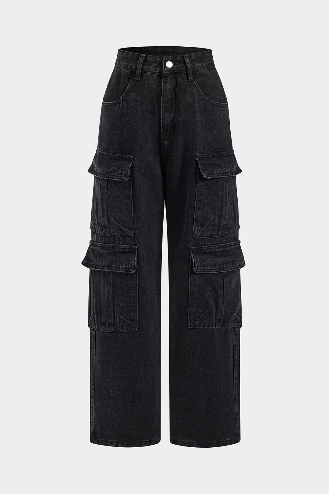Elevate your casual wardrobe with the Stealth Cargo Wide-Leg Jeans. These sleek, black denim jeans feature practical cargo pockets with a modern, high-waisted fit, combining utility with style. The relaxed wide-leg design provides ultimate comfort and versatility for both day and night looks.