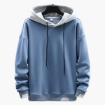 Men's pullover hoodie with kangaroo pocket and ribbed finishes.