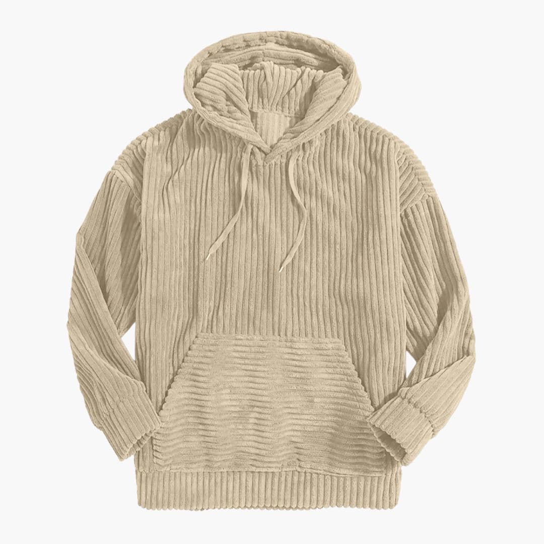 Unisex corduroy hoodie with drawstring hood and front pocket
