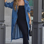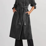 Throw it over tailored pants and heels for a sleek city look, or style it with boots for an off-duty vibe. The Dakota Denim Trench is where timeless trench styling meets contemporary denim flair.