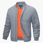 Men's bomber jacket with ribbed collar, zipper, and quilted lining, designed for mid-seasons