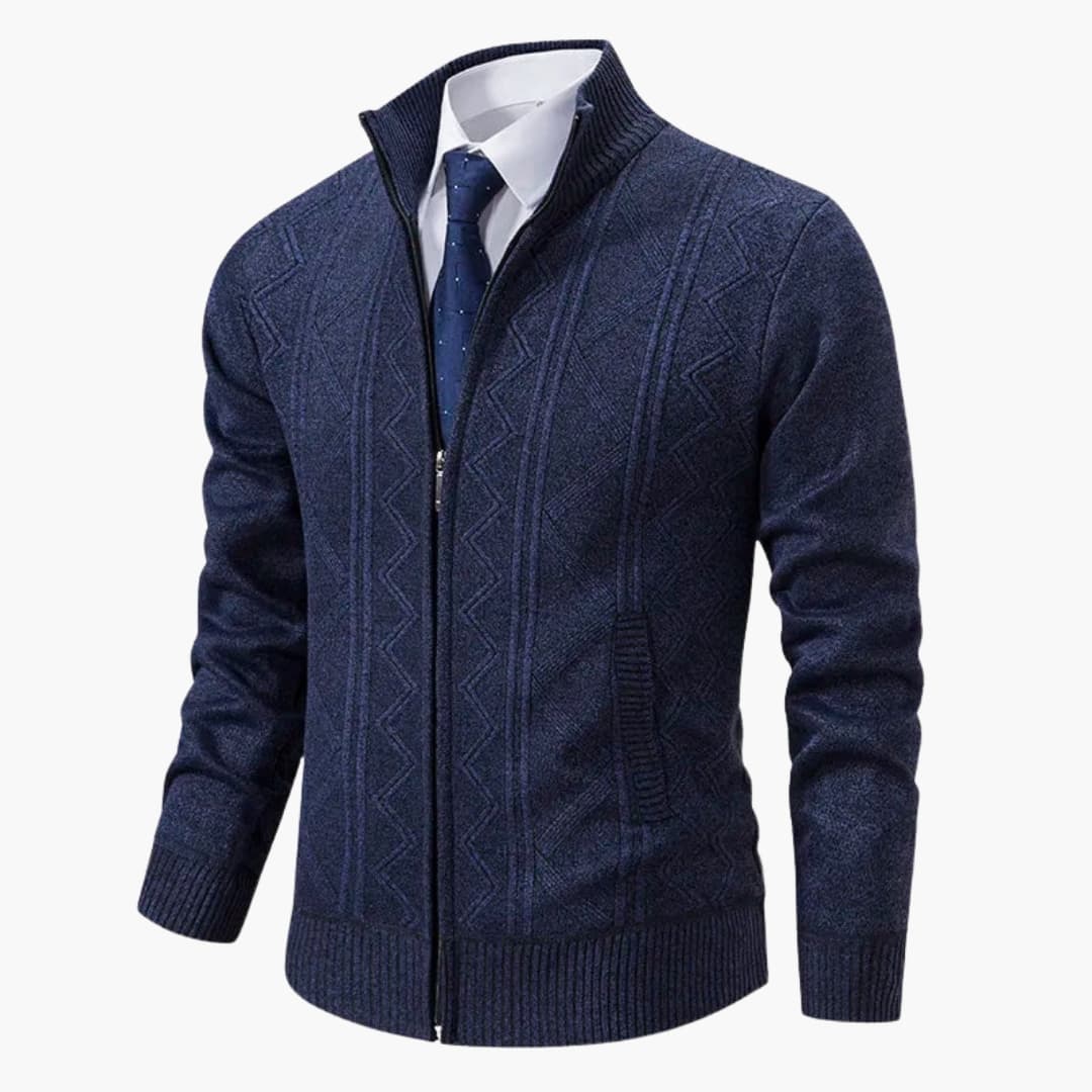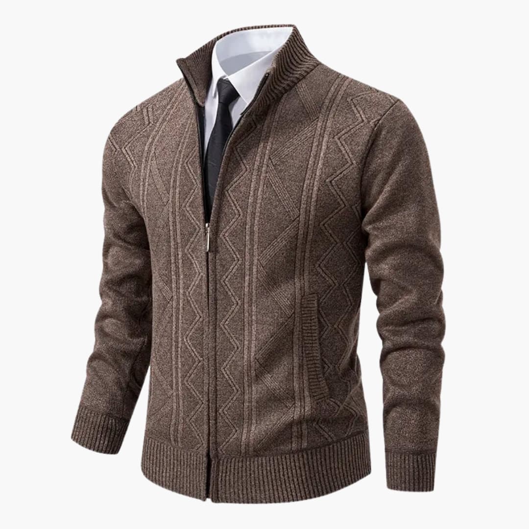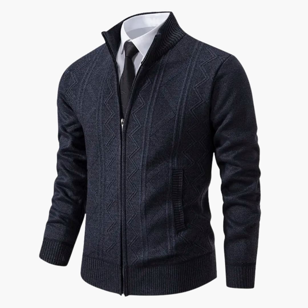 • Sleeves: Textured knitted sleeves with ribbed cuffs for a snug fit.