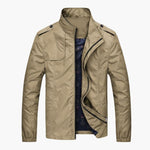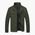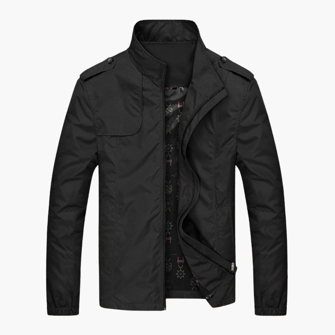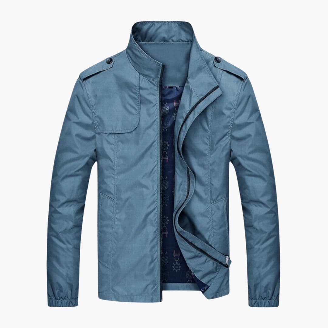 This men's jacket features a full-length zip closure and a stand-up collar for increased coverage. It is designed for everyday wear, especially in variable weather. Practical details, such as adjustable cuffs and side pockets, make it easy to use. The standard fit allows the jacket to be easily paired with different outfits.