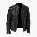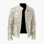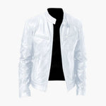 This men's jacket features a standard fit and a lined interior. It closes with a front zip and has two chest pockets as well as two side pockets. The cuffs are adjustable with snap buttons. Its simple style is suitable for everyday use or for events requiring a more dressed-up outfit.