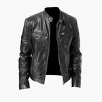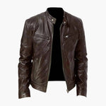 Men's biker style jacket with zip closure and long sleeves