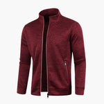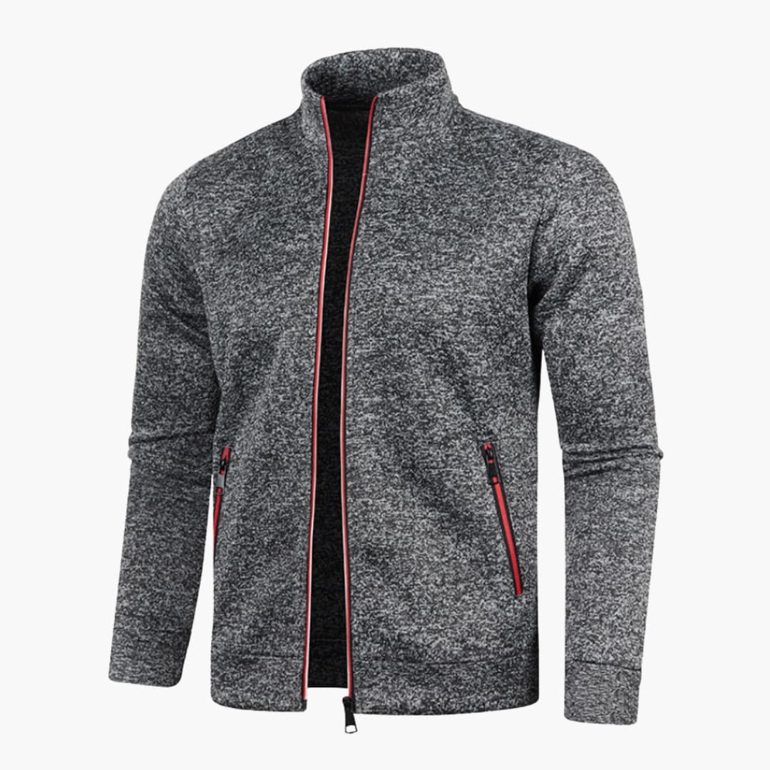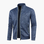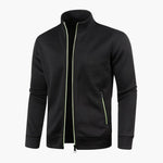 This men's jacket features a stand-up collar and a full-length zipper closure. It has a modern straight cut with long sleeves and two zipped side pockets for everyday use. This design allows layering during transitional seasons, while the elastic cuffs and hem ensure a secure fit. Available in several colors, this jacket pairs well with various styles for travel or outdoor activities.